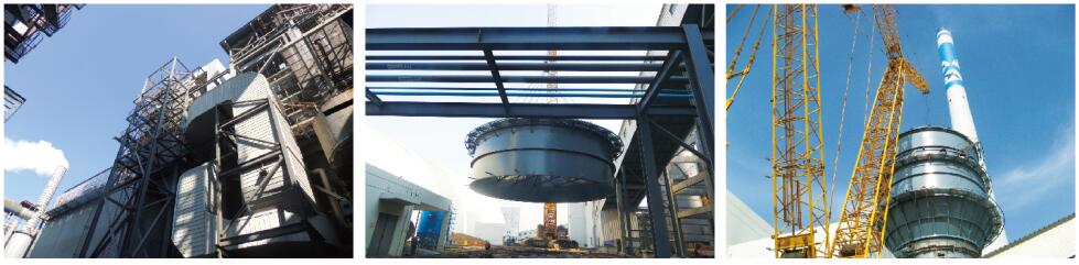 該工程施工場地緊張,國能中電采取濕式靜電除塵器和脫硫塔垂直分布的一體化設計,將濕式靜電除塵器安裝在脫硫塔上方,節約了施工場地。